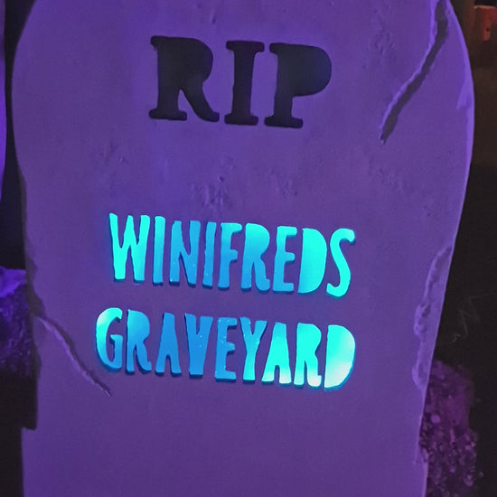Well you've found it! The coolest Front yard and party decor you could find! Make a statement with our light up tombstone. Choose between a true classic that just simply says "RIP" or a FULL CUSTOM stone that allows any epitaph you can think of and let the neighbors know who loves Halloween more! Cant say you WONT win a contest with these.